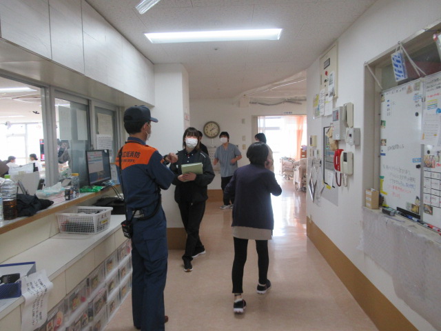 今年も浮羽消防署から署員さんに来ていただき、特養・ショート・デイ合同での避難訓練を行いました