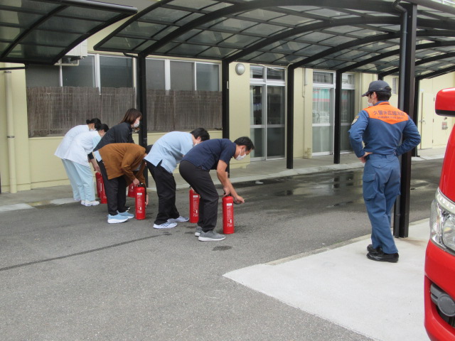 たまたま実習で来られていた学生さんにも参加いただき、私が知る中で一番大人数で行った消火訓練となりました