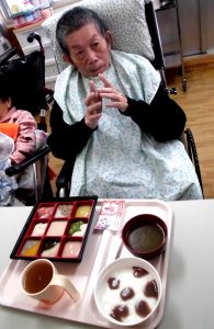 元日はご利用者様にお屠蘇をお酌させていただきました。